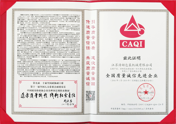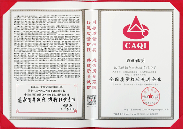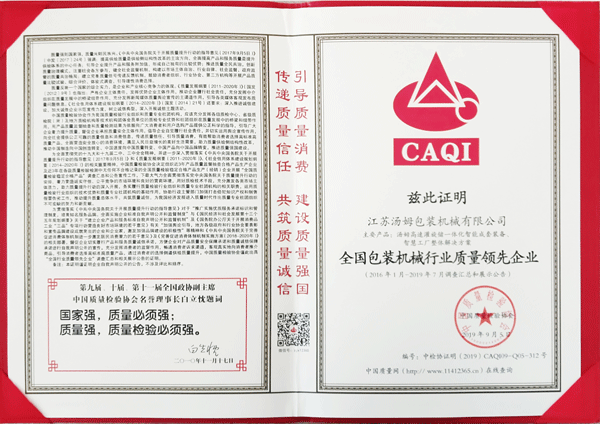 全國包裝機械行業(yè)質(zhì)量領(lǐng)先企業(yè)