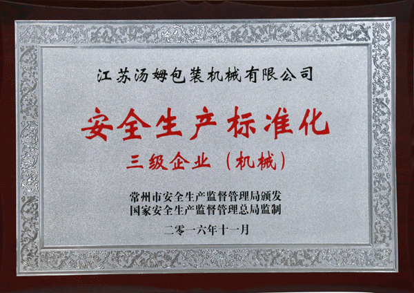 機械行業安全生產準備化三級企業