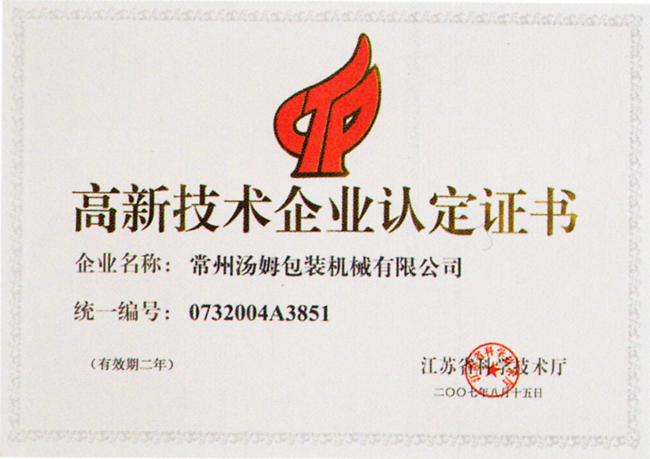 高新技術產品認定證書